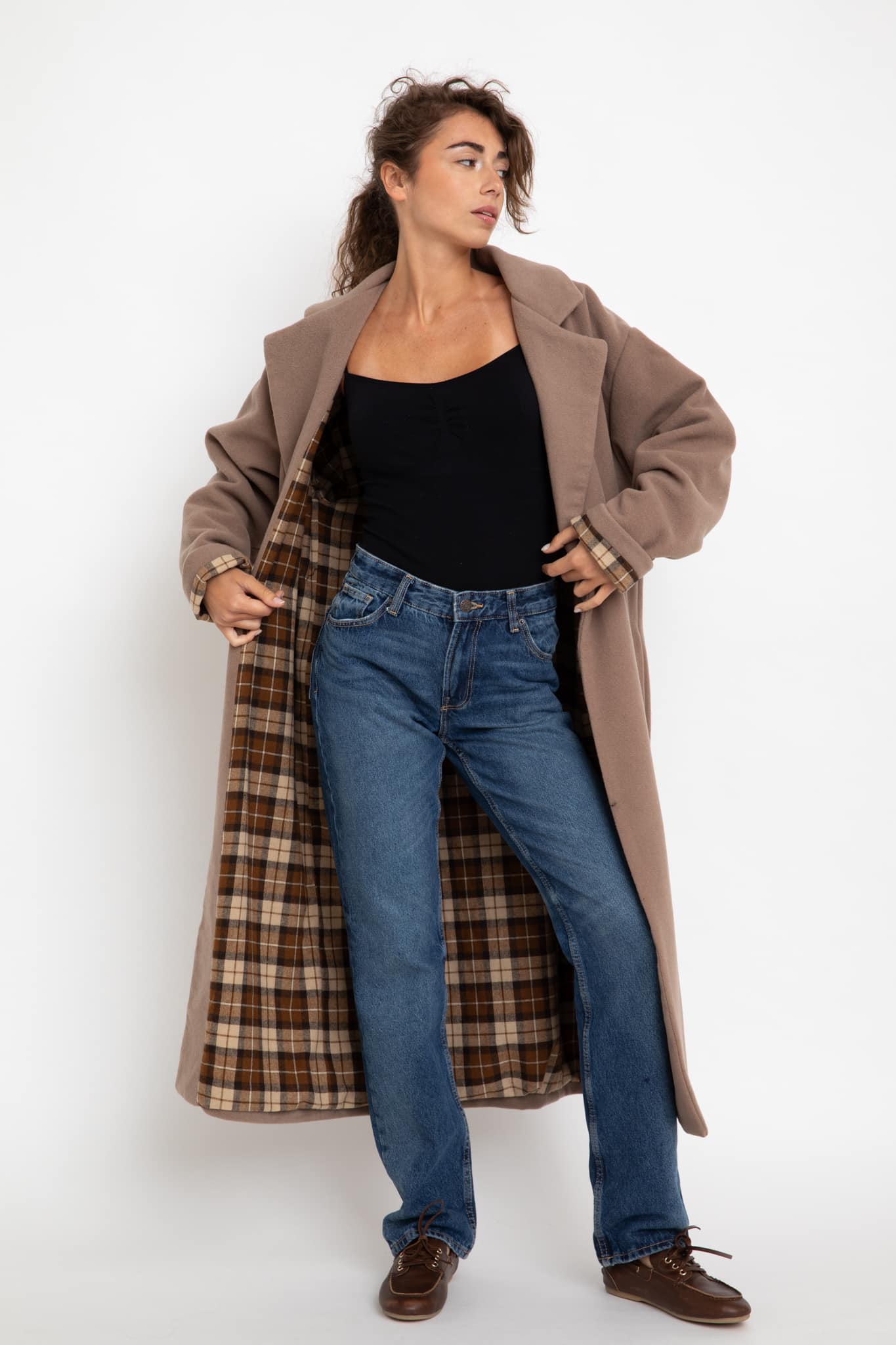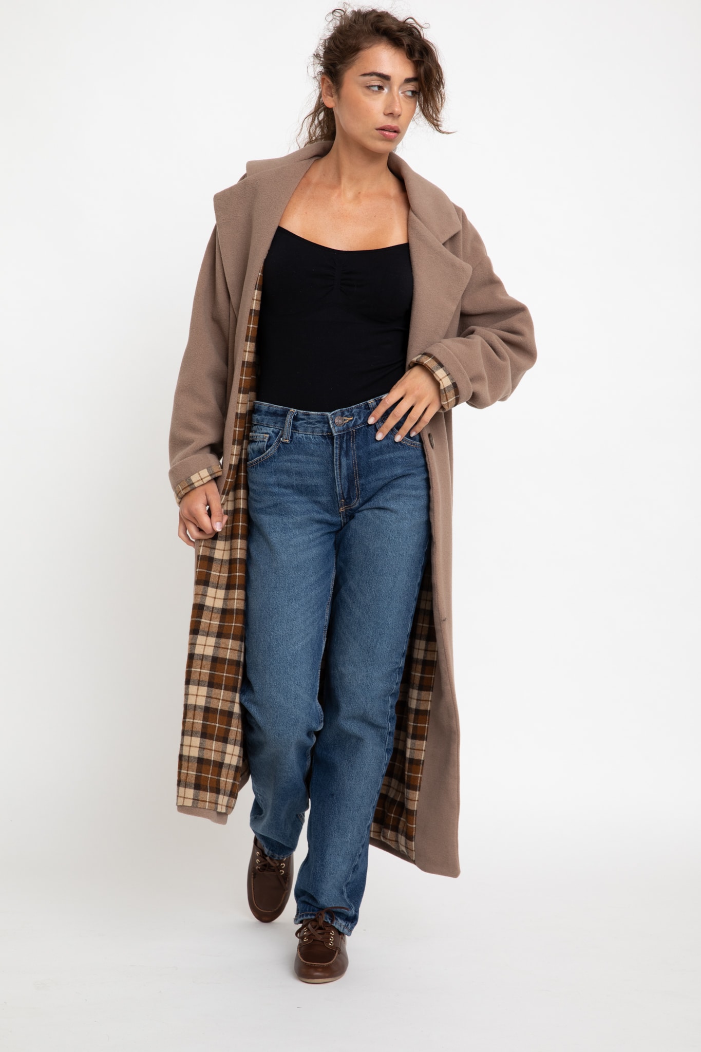 Pour une finition irréprochable, ce manteau est doté d’une jolie doublure à carreaux qui ajoute une touche de chaleur et de style, faisant de ce manteau long beige une pièce polyvalente à porter en toute saison.