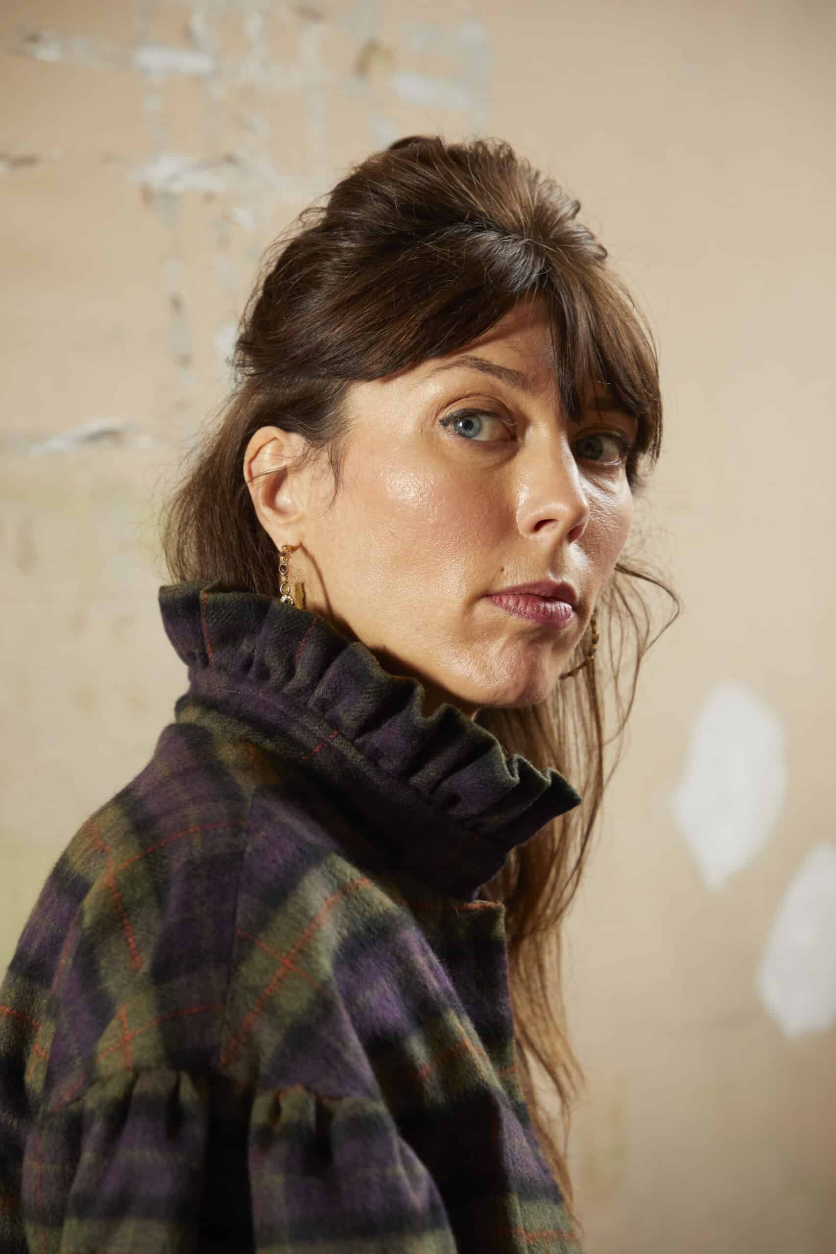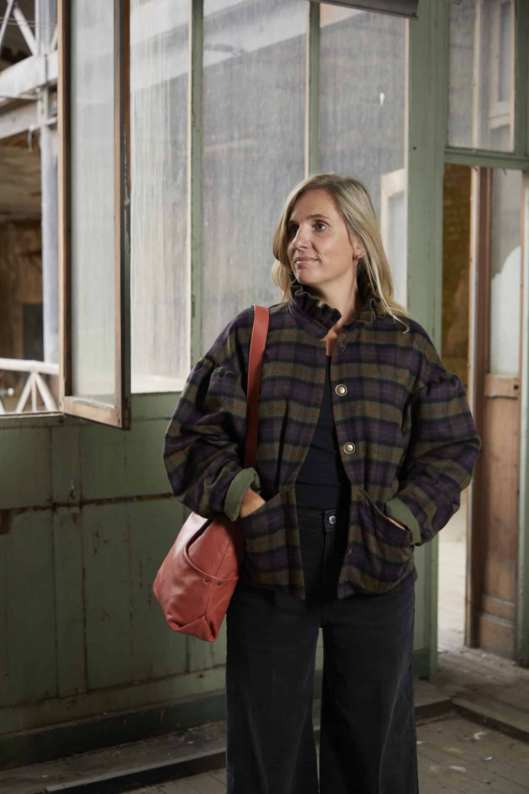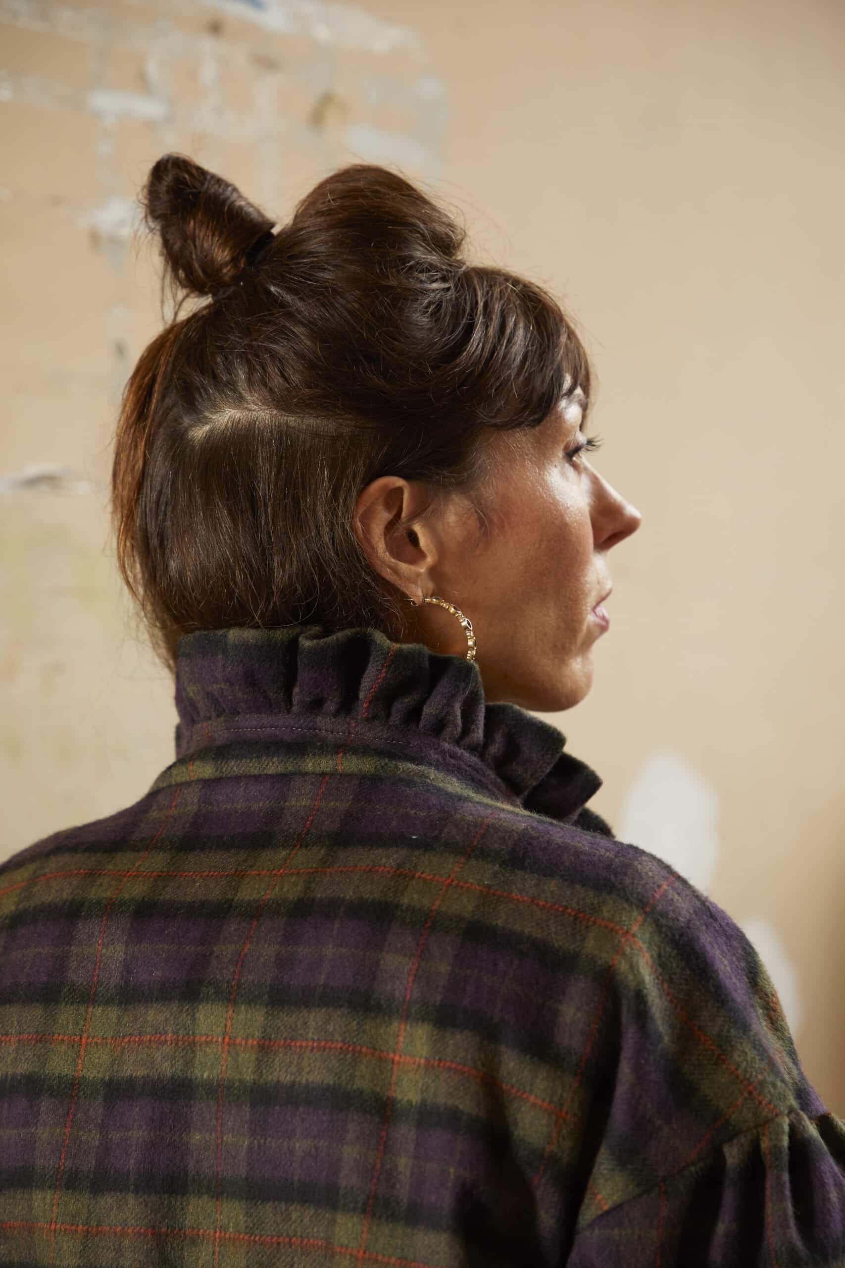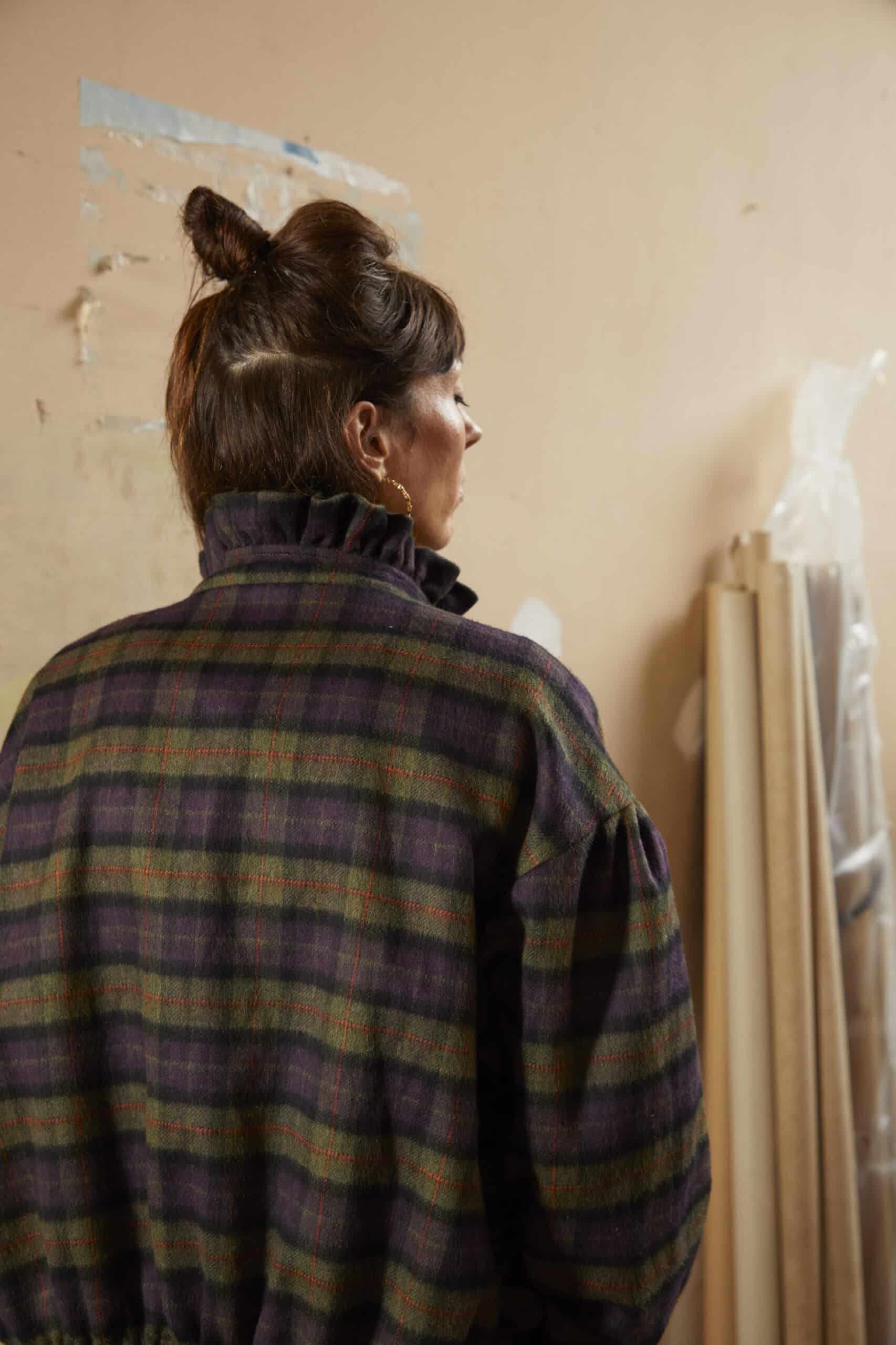 La veste Gisèle col froufrou tartan est une édition limitée réalisée en collaboration avec la réatrice de maroquinerie Julie Meuriss.